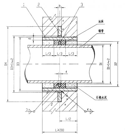 綜上所述不難知道,DN50的A型剛性防水套管對應的穿過的鋼管的公稱直徑為DN50(φ=60.3)。進一步管材發(fā)現,剛性防水套管的公稱直徑也與穿過的鋼管的公稱直徑是一一對應的關系,且對應關系為:剛性防水套管DNXX=DNXX的鋼管。